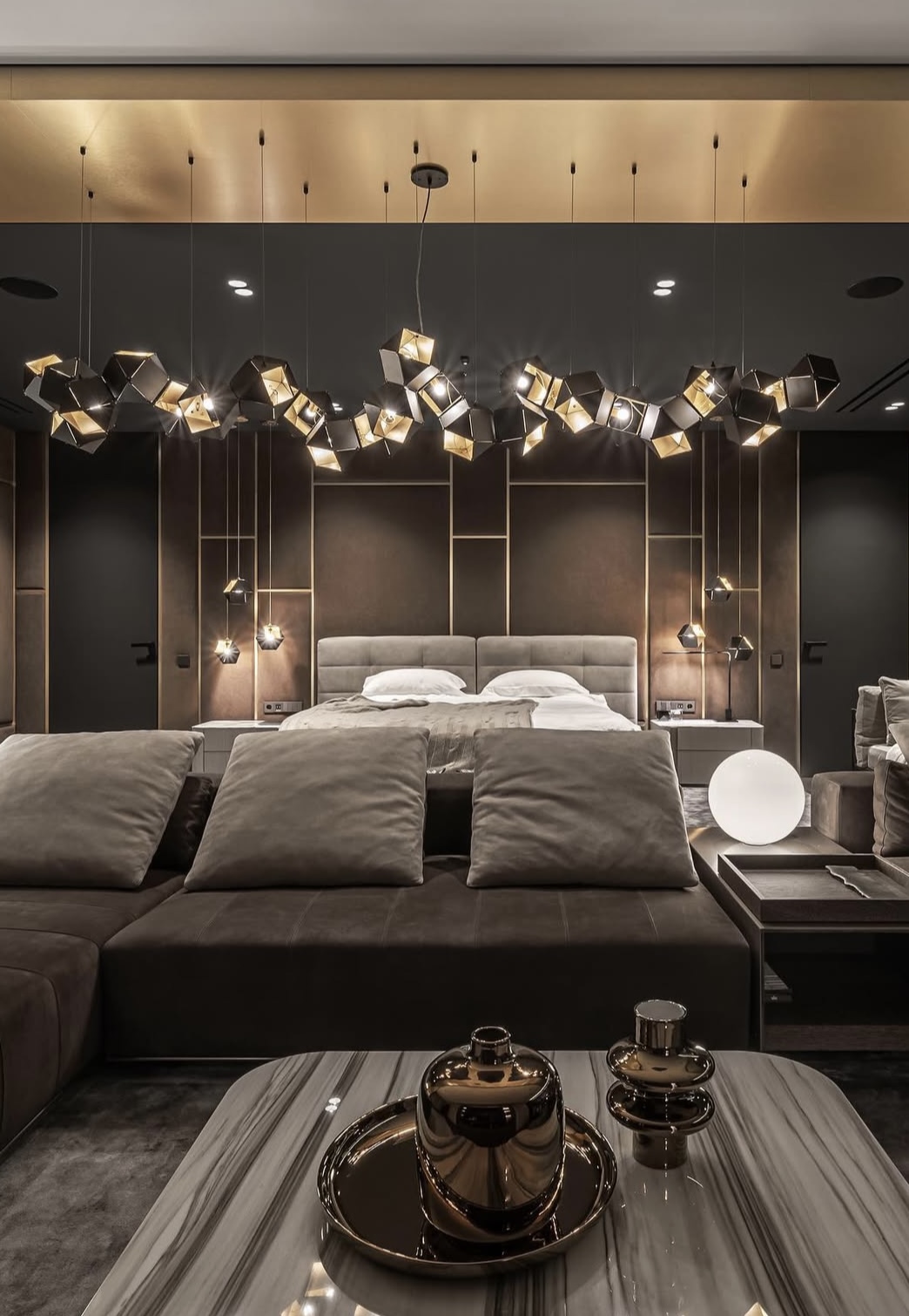 · Эксклюзивный дизайн: Сочетание мягкой ткани и декоративных вставок из латуни или нержавейки.